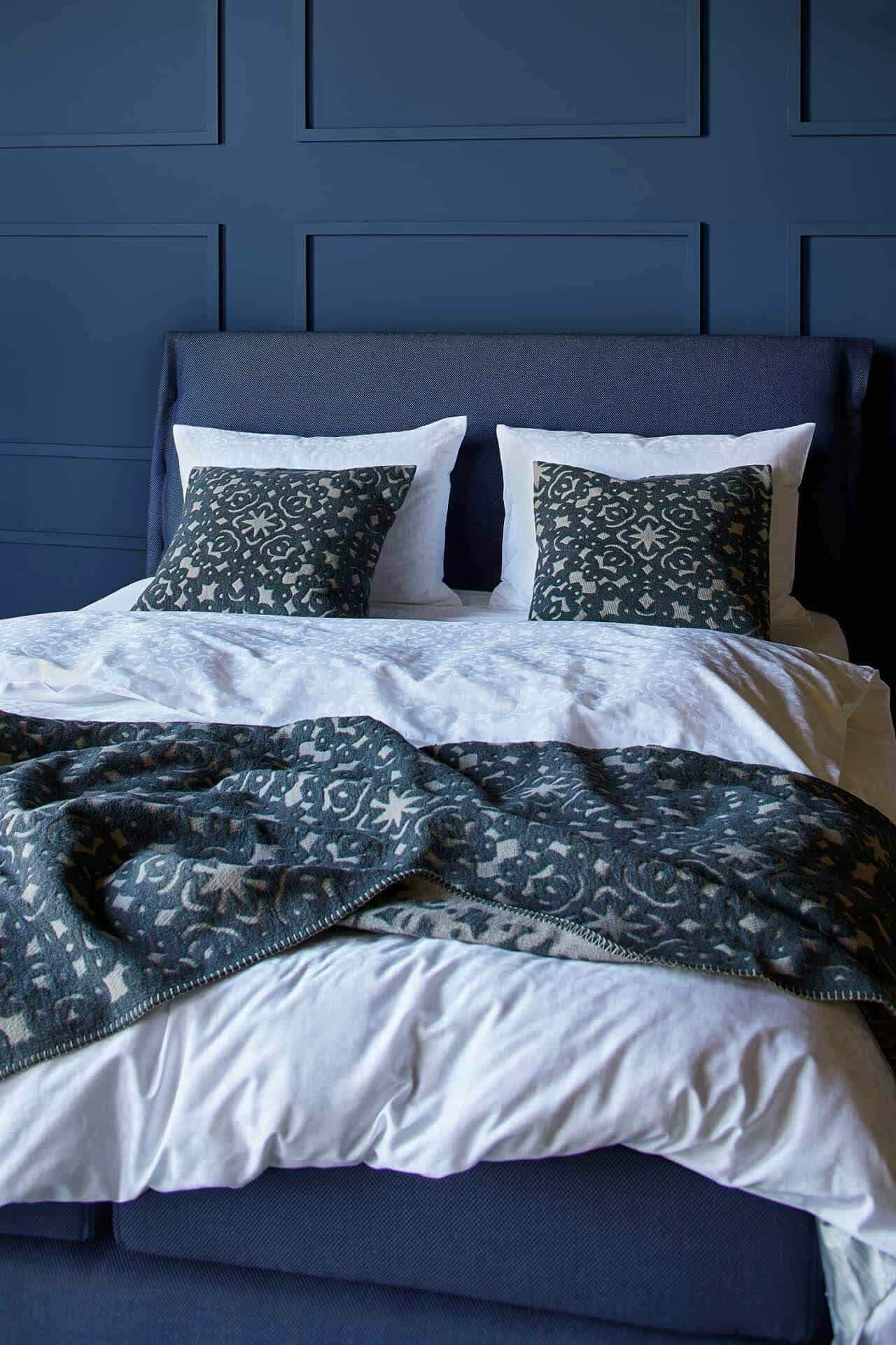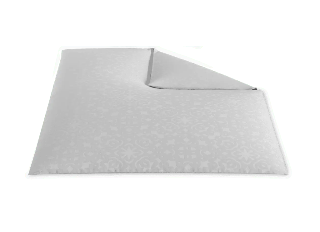 Linge de lit haut de gamme en satin de coton à motif damassé de style papier découpé.