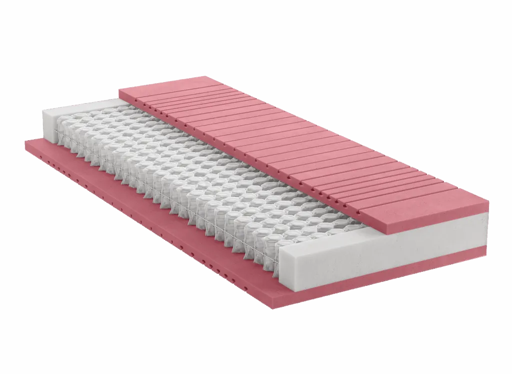 - Noyau 5 zones à ressorts ensachés haut de gamme et mousse confort avec canaux d’aération transversale