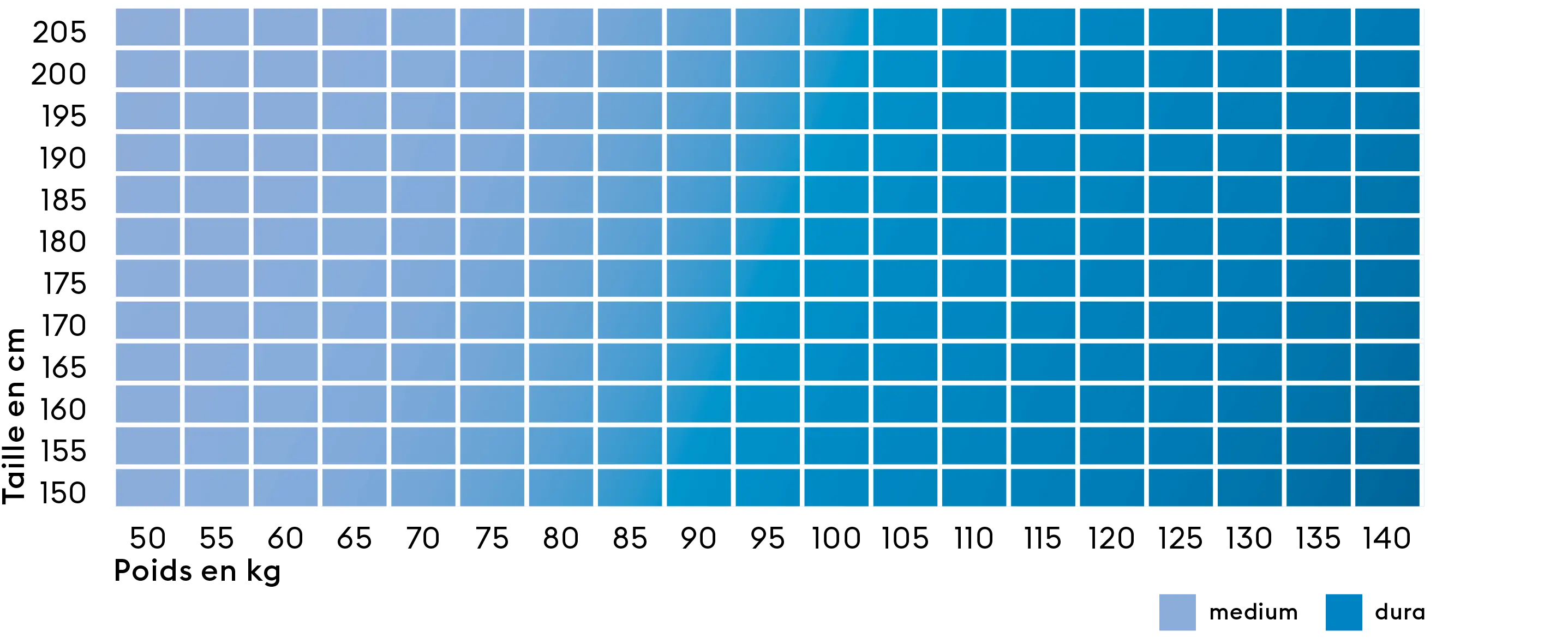 Retournez régulièrement les matelas réversibles. Les matelas inversables tête/pieds peuvent en outre être retournés dans le sens de la longueur. Cela soulage le matériau et favorise l’évacuation de l’humidité.