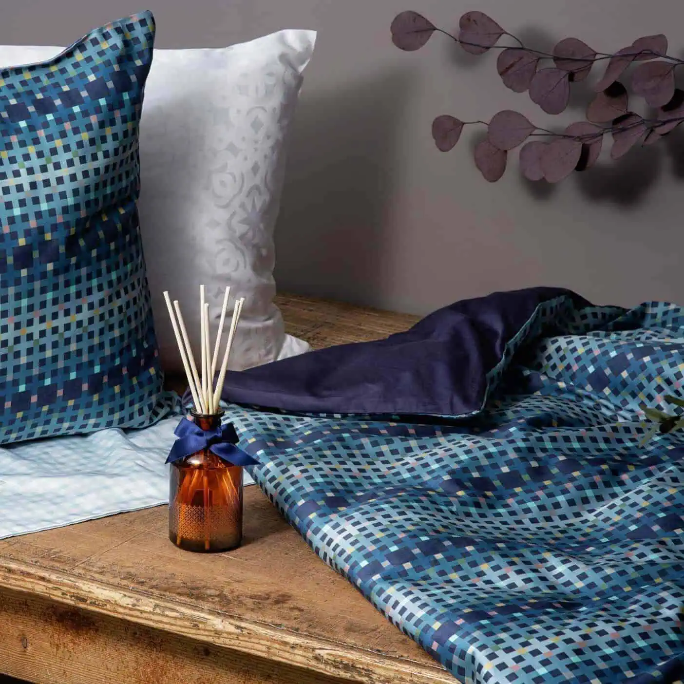 Pregiata biancheria da letto in satin di cotone ispirata alla croce svizzera.