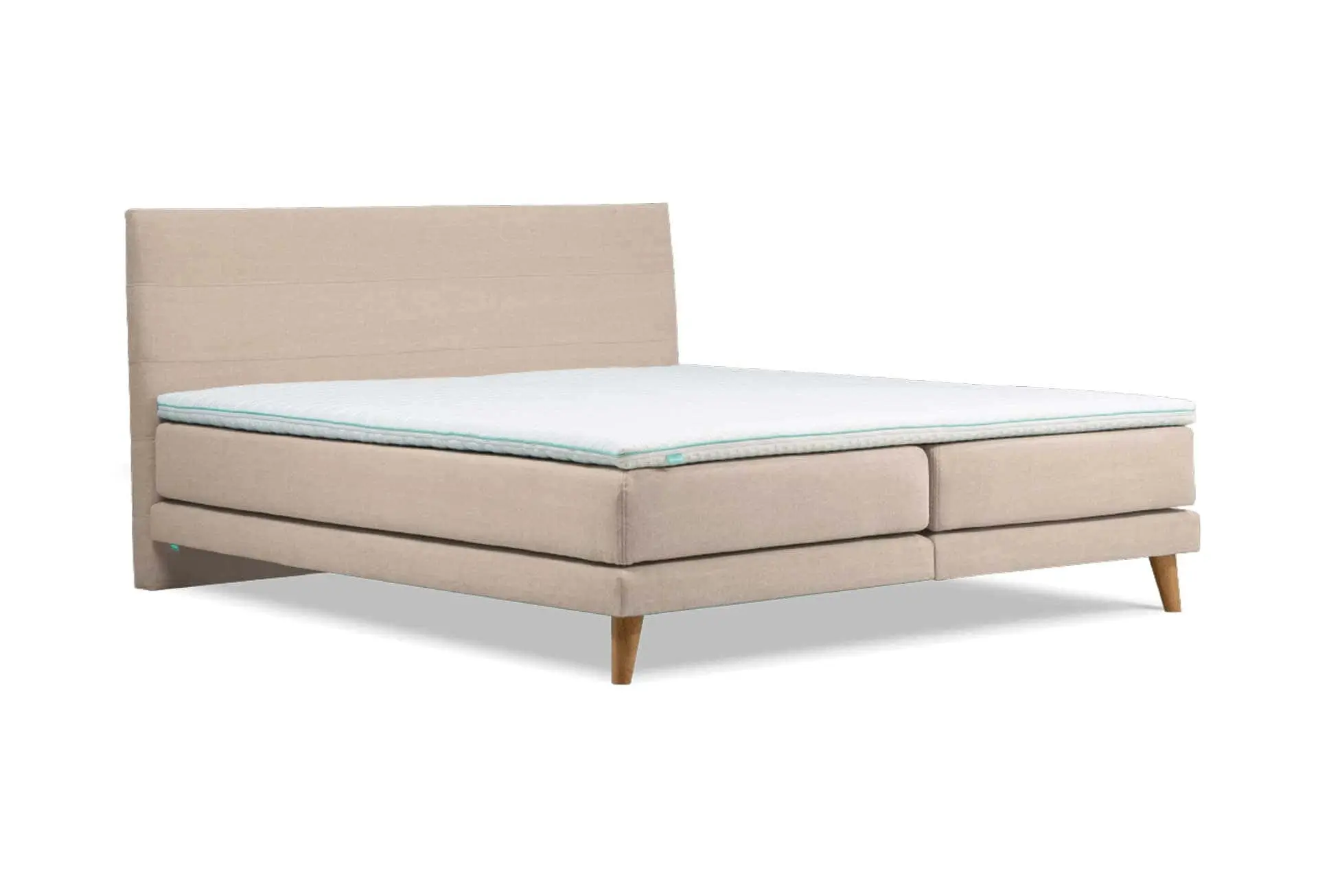 Geradliniges Boxspringbett mit horizontalen Ziernähten.