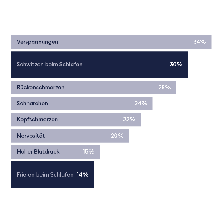 Bei 30% der TeilnehmerInnen gilt Schwitzen als eine Hauptursache für Schlafstörungen.