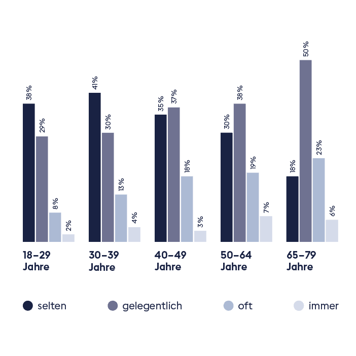 Befragungszeitraum11. bis 21. Mai 2021 ZielgruppeBevölkerung in der Deutschschweiz, in der Romandie und im Tessin im Alter von 18 bis 79 Jahren Stichprobengrösse1’083 Interviews MethodeOnline-Befragung mit einer agilen Insights-Plattform DurchführungLINK Marketing Services AG |